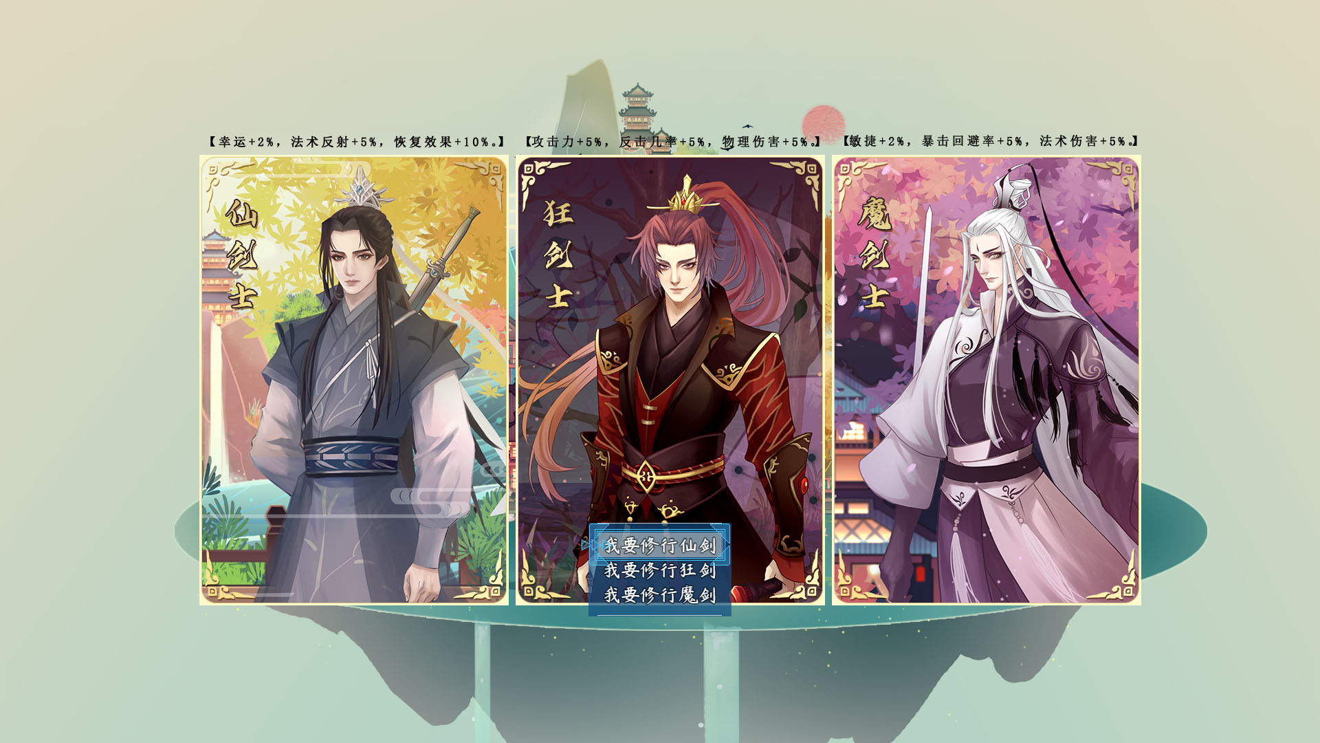 玩家可以在游戏时体验三个职业(仙剑、狂剑、魔剑),每个职业都各有特色,同时也配置了不同的成长路线,故事情节以及游戏体验。