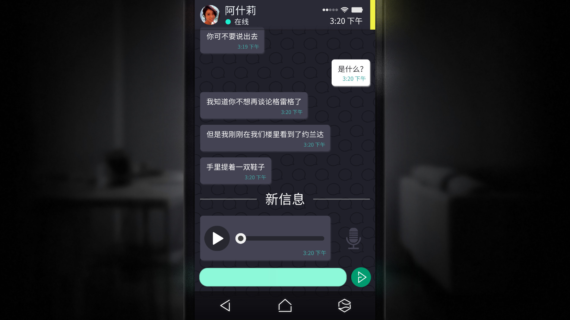 在游戏中,你会找到了一把丢失的手机,手机的主人叫安娜。通过检查手机里的视频,你可以听到一些绝望的呼救声。而当你深究这一切,手机的表现就越发怪异。你将通过手机和她的朋友们聊天,他们也不知道她在哪里。在她的短信、电子邮件和相册里提供了一些信息碎片。现在,需要由你来把它们拼凑起来。