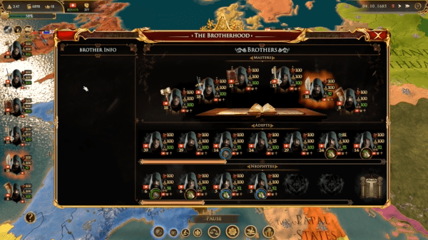 除了你的兄弟会之外,另一个全球性的兄弟会也想以他们的方式来改变世界。这个兄弟会也同样会拉拢政府成员,操纵国家。你经常会碰到穿着红袍的修士,不过不要急于攻击他们。在某些场合下,他们的行动会对您带来有利的结果。当然,行动时务必要保持谨慎,否则成员的身份会被政府或其他兄弟会的成员识破。