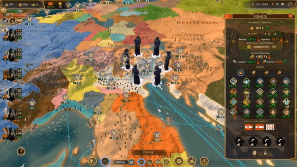 在本游戏中,一切都是有相互联系的。比如,如果用来生产武器的钢铁短缺,则该国家的战斗力会受到影响。如果您想要扩充军队来提高战斗力,则需要动员农户参军。一旦农户数量减少,粮食的生产量也会降低,从而影响到其他行业。这可能会导致工匠或其他阶级消失、迁移。工匠会在各个产业中工作,生产用来出口的奢侈品,用以补贴国库。因此,您所做的每个决定,都会引发一连串的结果。若想成为优秀的宗师,就必须保持平衡,考虑所有可能的联系,将世界朝着正确的方向推动。
